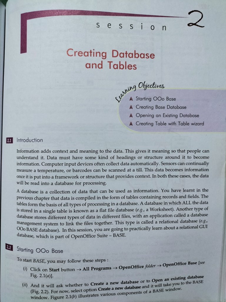 Session 2 Creating database and tables.