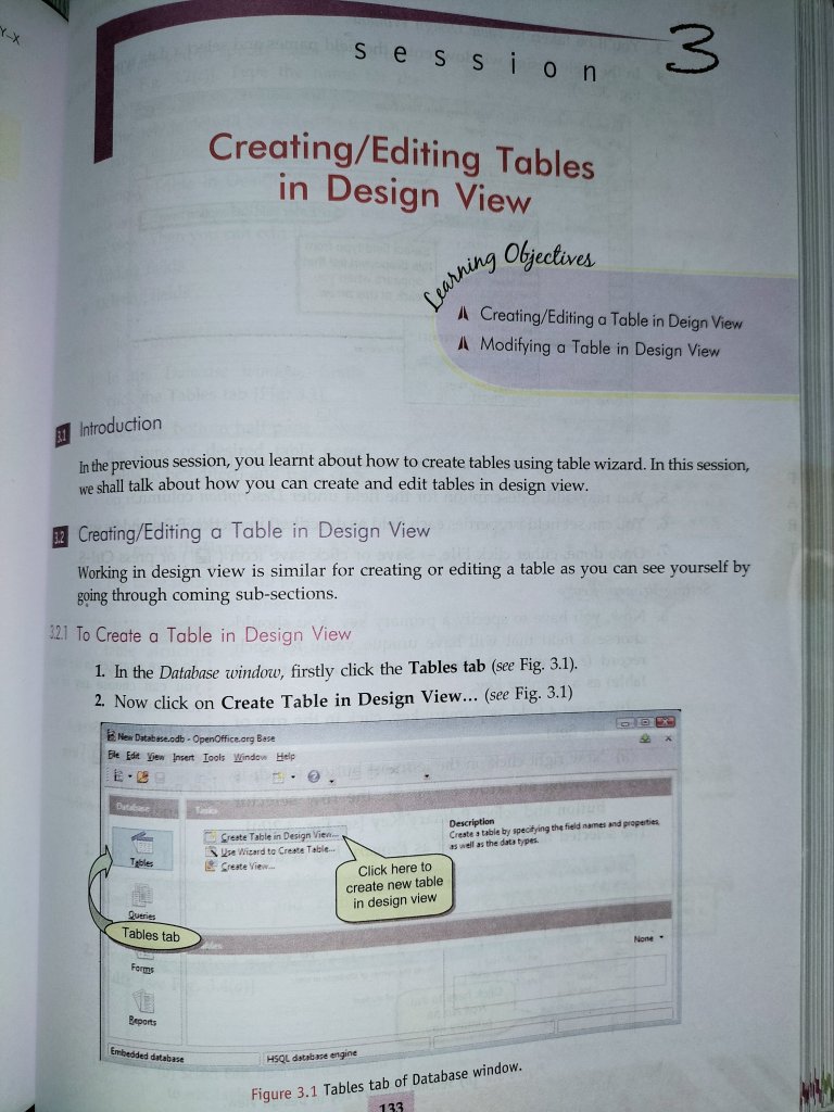 Session 3 Creating/editing tables in design view.