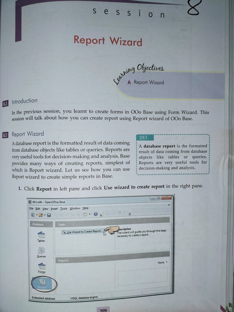 Session 8 Report wizard.